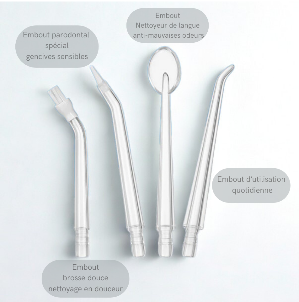Oui ! Tous les embouts se clipsent et se retirent facilement. HydraSmile™️ est livré avec plusieurs embouts OFFERT adaptés à chaque besoin : gencives sensibles, nettoyage quotidien, langue…
